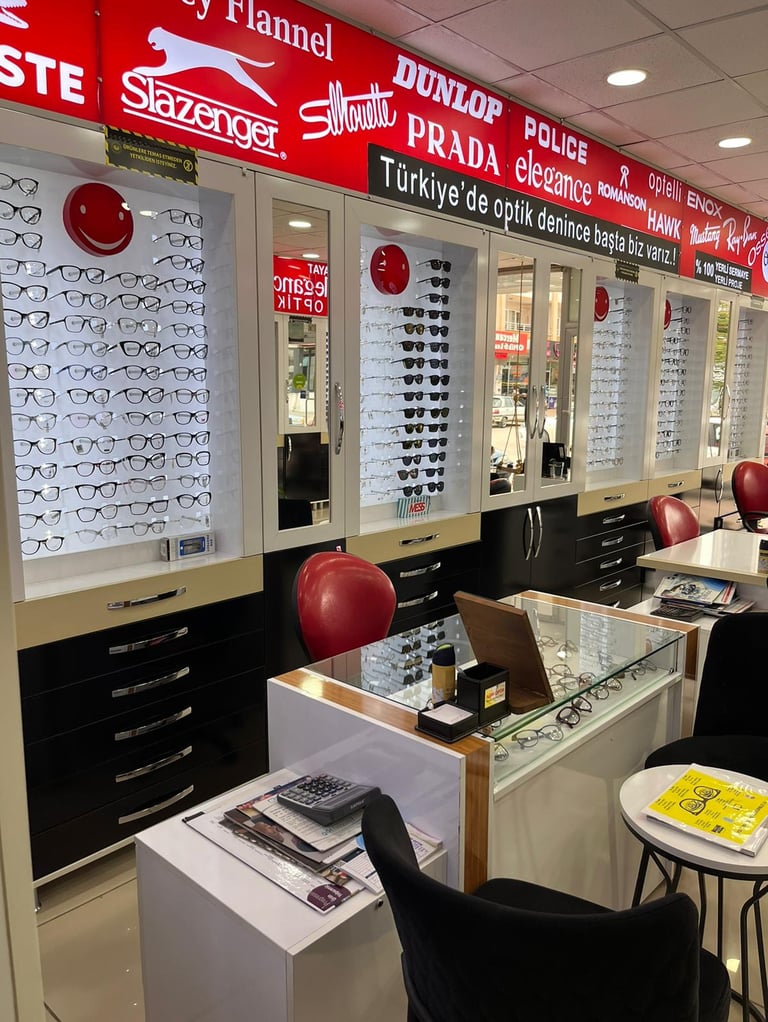 Optik gözlük alanında da ürün skalamız geniş olmakta olup, her yüz şekline hitap edecek ürünleri şubemizde sizler için bulundurmaktayız. Kemik, metal ve çerçevesiz modeller siz kullanıcılarımıza hitap edecek şekilde olup yeni sezon ürünlerdir.